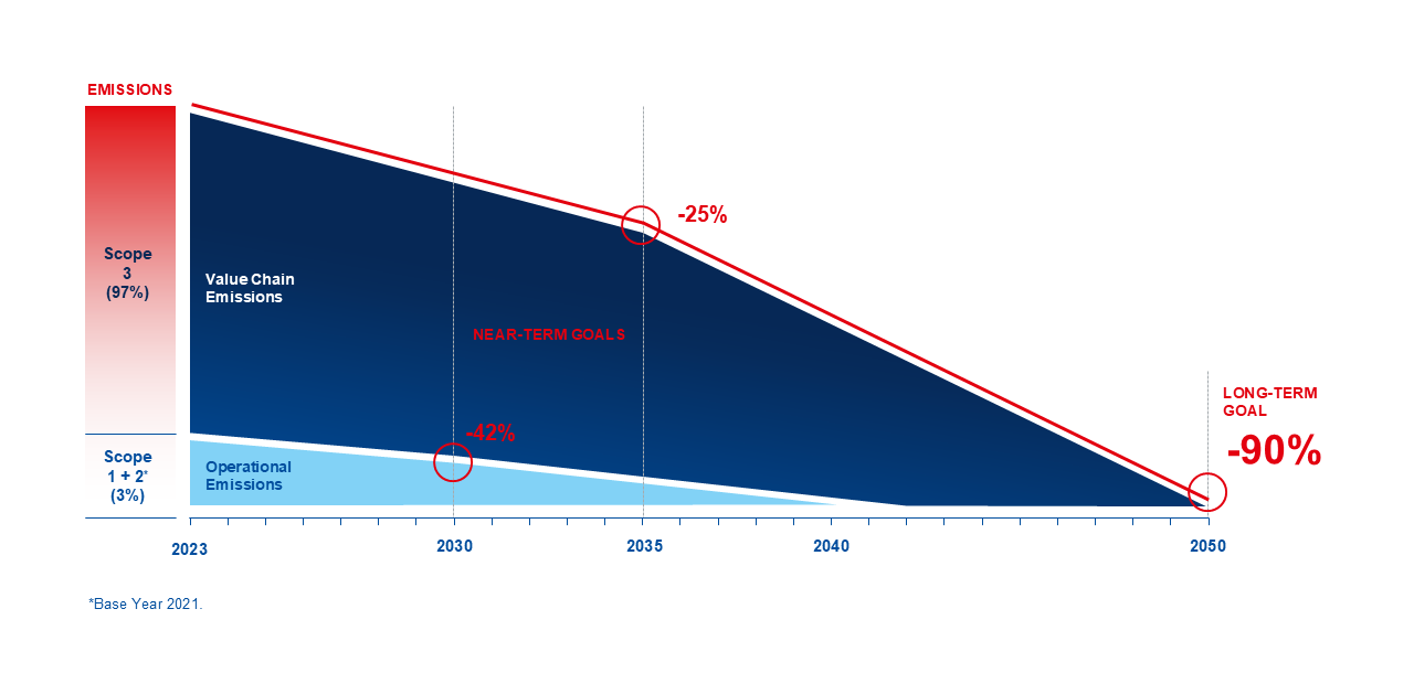- to reduce all Scope 3 emissions by at least 90% until 2050. The base year for this reduction goal is 2023.